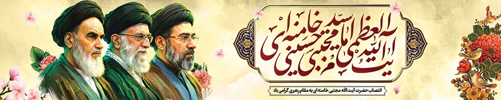بنر انتخاب رهبری آیت الله سید مجتبی خامنه ای با بک گراند روشن، با تایپوگرافی، تذهیب، تمثال طراحی و برای تغیرات و شخصی سازی کافی است فایل را دانلود نمایید و با فتوشاپ تغیرات را اعمال کنید.