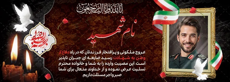 این طرح آماده بنر تسلیت شهدا را با تغیر در ابعاد ، میتوانید به عنوان ساخت بنر تسلیتی رایگان نیز استفاده نمود.