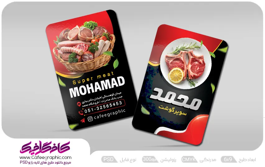 کافه گرافیک | دانلود ها | کارت ویزیت psd سوپر گوشت
