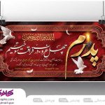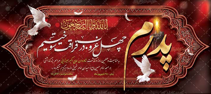 بنر تسلیت چهلم برای پدر لایه بازرایگان درابعاد200*90 افقی، برای دریافت طرح بنر ترحیم چهلم ،با خرید اشتراک از سایت کافه گرافیک اقدام نماید.