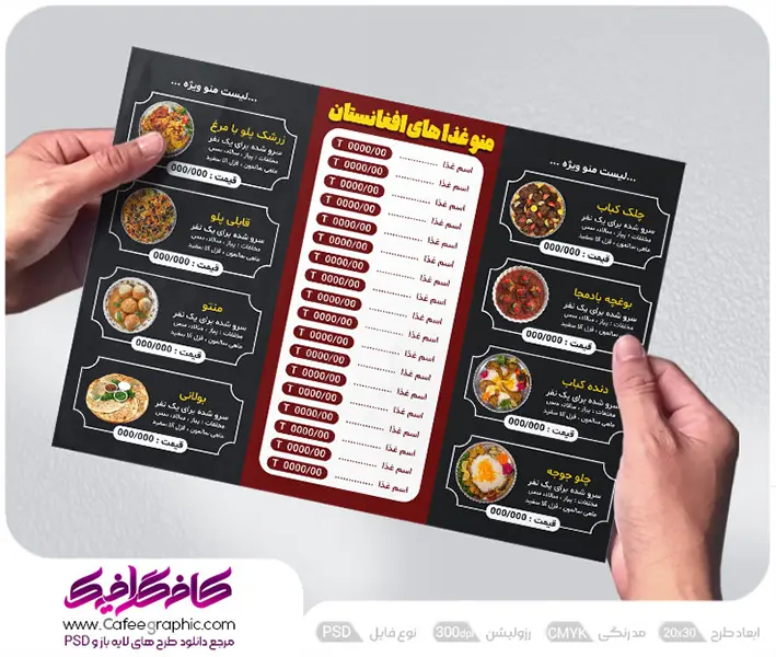 دانلود نمونه طرح لایه باز منو رستوران افغانی