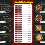 دانلود طراحی منو رستوران غذاهای سنتی افغانستان