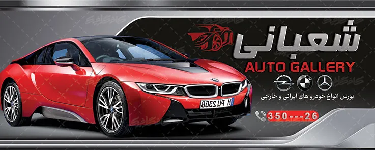 تابلو لایه باز نمایشگاه و اتوگالری اتومبیل