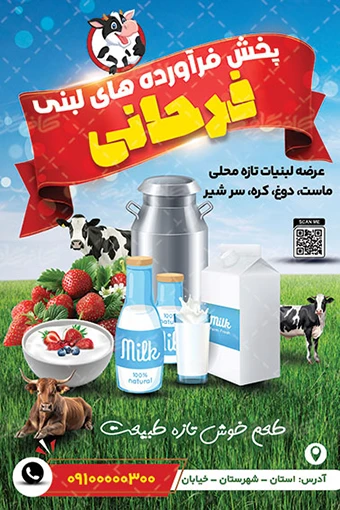 طرح پوستر تبلیغاتی فروشگاه لبنیات