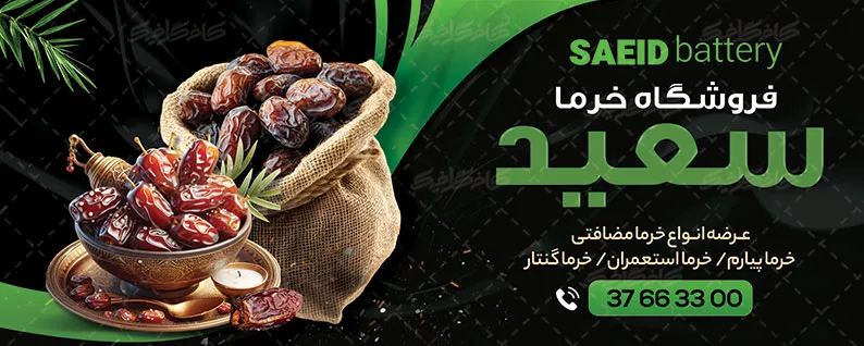 طراحی بنر خرما فروشی با نرم افزار فتوشاپ (cs6) طراحی شده است. و با فتوشاپ های ورژن بالاتر نیز باز می شود.