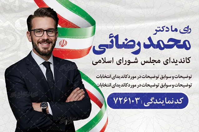 نکته : برای ویرایش و شخصی سازی طرح های تراکت و بنر های انتخاباتی فایل با پسوند psd را با نرم افزار فتوشاپ باز نموده و تغیرات دلخواه خود را اعمال کنید.