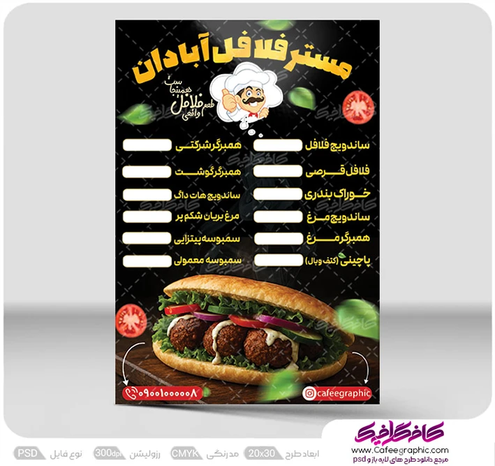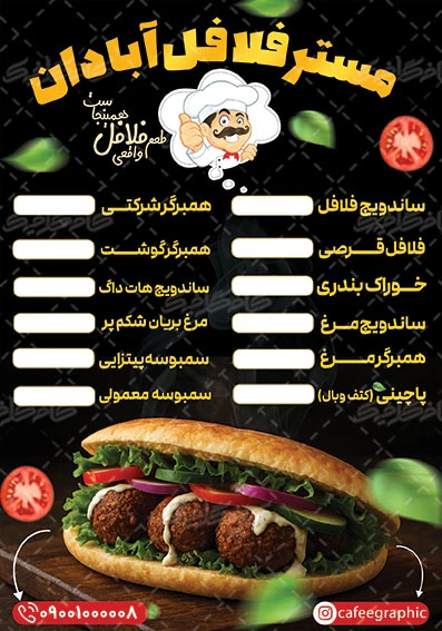نمونه طرح لایه باز منو فلافلی و سلف سرویس