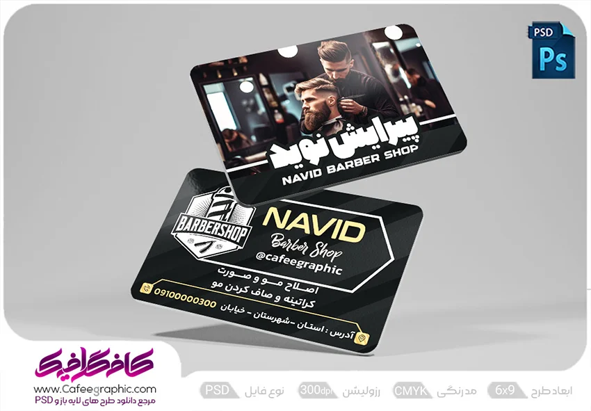 نمونه کارت ویزیت آرایش و پیرایش مردانه فانتزی توسط تیم کافه گرافیک بصورت اختصاصی انجام شده و در هیچ وب سایت دیگری نمونه مشابه ندارد.