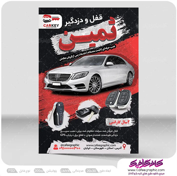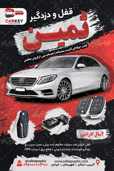 طرح PSD تراکت قفل و دزدگیر اتومبیل در اندازه21*30 بصورت تک رو برای انواع چاپ افست و دیجیتال ، مطابق با استاندارد های چاپخانه می باشد.