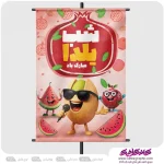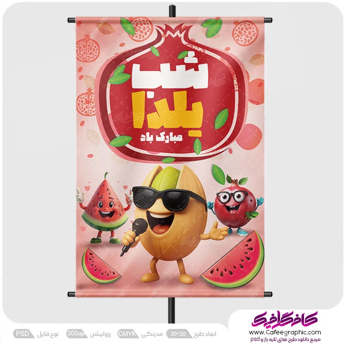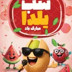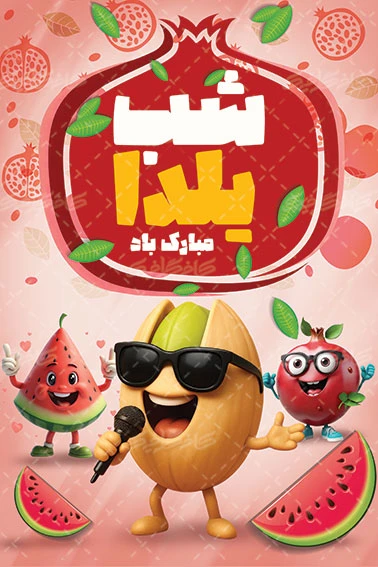 با بک گراند قرمز و به همراه عکس با کیفیت انار و هندوانه و پسته که نماد و سمبل شب چله می باشد طراحی شده است .