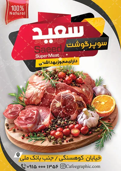 اگر در شروع یک کسب و کار آزاد و مشغول راه اندازی حرفه ای فروشگاه گوشت هستید، قدم اول برای تبلیغ ، طراحی تراکت لایه باز فروشگاه گوشت است.