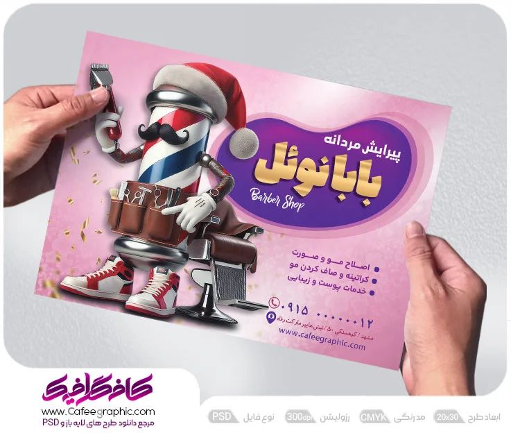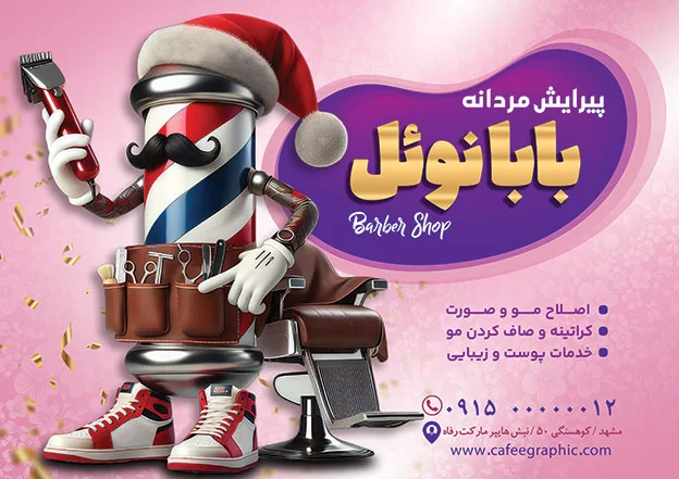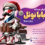 این پوستر با ترکیبی از کارکتر و شخصیت پردازی المان های آرایشگاه و شخصیت بابانوئل طراحی شده است.
