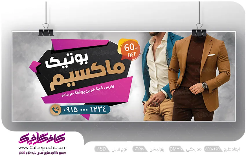 تیم کافه گرافیک با در اختیار دادن طرح های شیک و حرفه ای بنر تبلیغاتی بوتیک مردانه در بخش طرح لایه باز و از همه مهمتر متنوع این امکان را به وجود آورده است .