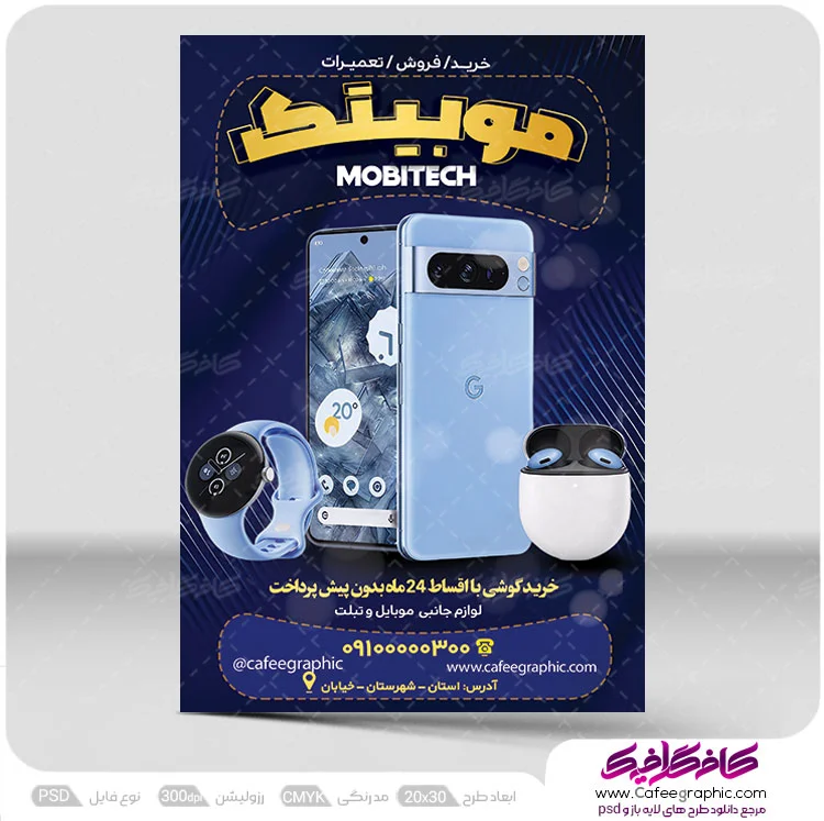 نمونه تراکت فروشگاه موبایل و لوازم جانبی لایه باز یا نمونه پوستر تبلیغاتی تعمیرات تلفن و گوشی همراه را به صورت لایه باز تک رو و در فرمت PSD فتوشاپی، ابعاد30*21 و با استاندارد رنگ بندی چاپی قرار دادیم. برای دانلود پوستر تبلیغاتی خدمات و تعمیرات تلفن همراه با خرید اشتراک از سایت کافه گرافیک اقدام نماید .