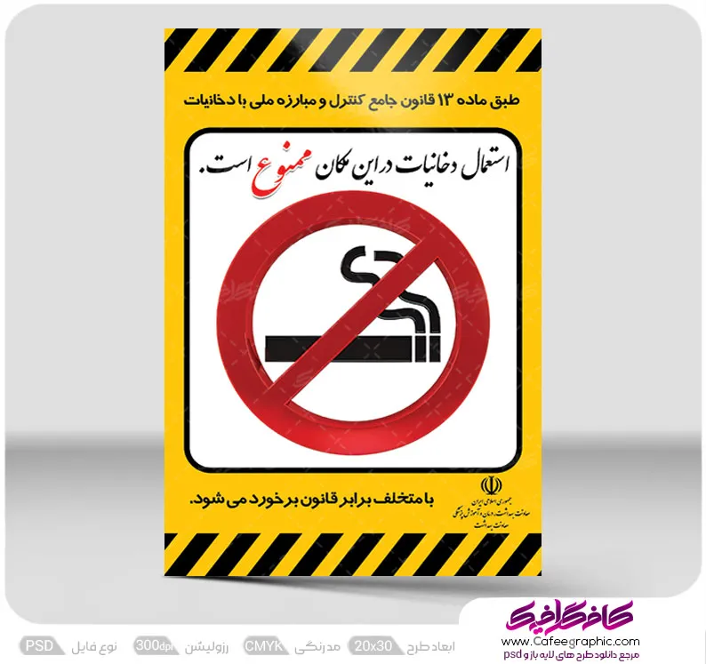 طرح پوستر دخانیات ممنوع لایه باز در فرمت PSD فتوشاپی، ابعاد 29*21 قرار دادیم .برای دانلود بنر استعمال سیگار ممنوع ،با خرید اشتراک از سایت کافه گرافیک اقدام نماید .