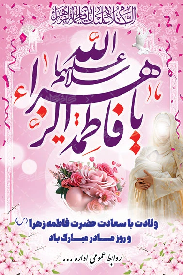 پوستر برای ولادت حضرت فاطمه و روز زن لایه باز یا نمونه طرح لایه باز ولادت حضرت زهرا و روز زن را با طراحی منحصر به فرد و حرفه ای برای شما طراحان و مشتریان عزیز قرار دادیم طرح ولادت حضرت فاطمه و روز زن در فرمت psd فتوشاپی،ابعاد 30*20 عمودی به صورت لایه باز قرار دادیم .
