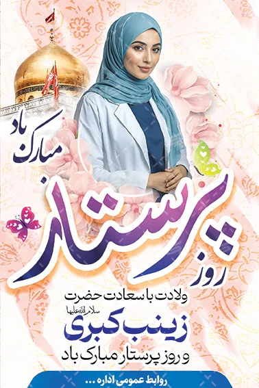 دانلود پوستر ولادت حضرت زینب و روز پرستار یا طرح بنر تبریک پاسداشت روز پرستار را با طراحی منحصر به فرد برای شما طراحان و مشتریان عزیز قرار دادیم، پوستر ولادت حضرت زینب(س) در فرمت PSD فتوشاپی،ابعاد 20*30 عمودی به صورت لایه باز فتوشاپی آماده شده است .