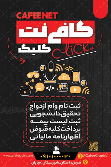همچنین دیگر طرح های مربوط به اینترنت را از بخش طرح تراکت لایه باز کافی نت مشاغل در دسترس قرار دارد.