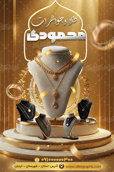 طرح‌های لایه باز برای پوستر طلا فروشی وبسایت کافه گرافیک که برای چاپ بنر و افست مناسب هستند. این طرح‌ها شامل انواع مختلفی از تصاویر طلا و جواهرات با زمینه‌های متنوع و جذاب می‌باشند. همچنین، طرح‌های تراکت لایه باز طلا و جواهری نیز برای تبلیغات موجود است. این طرح‌ها در فرمت‌های مختلف عمودی و افقی قابل دسترس هستند.
