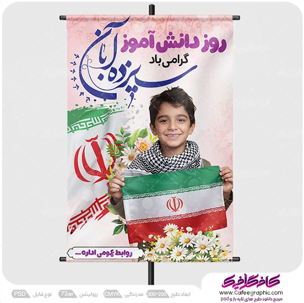نمونه پوستر تبریک روز دانش آموز رایگان یا نمونه طرح خام روز 13 آبان در فرمت PSD ،ابعاد 20*30 عمودی ،برای دانلود بنر لایه باز روز دانش آموز با تصویر دانش آموز بسیجی ،با خرید اشتراک از سایت کافه گرافیک اقدام نماید .