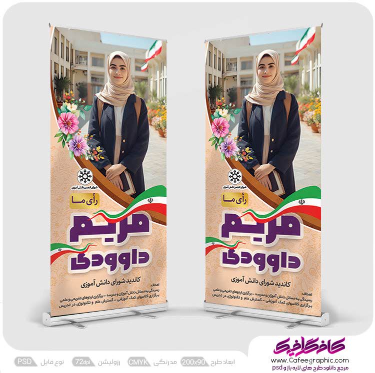 طراحی این پوستر ایستاده انتخابات شورای دانش آموزی توسط تیم کافه گرافیک بصورت اختصاصی انجام شده و در هیچ وب سایت دیگری نمونه مشابه ندارد.