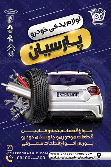 طراحی پوستر فروشگاه لوازم یدکی اتومبیل در اندازه20*30 بصورت تک رو برای انواع چاپ افست و دیجیتال ، مطابق با استاندارد های چاپخانه می باشد.