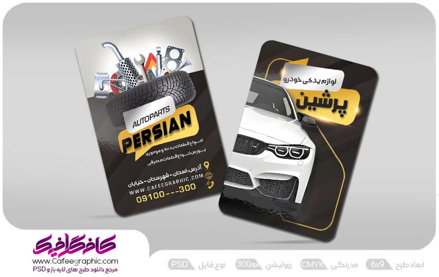 طراحان عزیز می توانند بدون هیچ افت کیفیتی در ابعاد مختلف کارت ویزیت لوازم یدکی اتومبیل را تغییر و طراحی مجدد کنند. چون به صورت لایه باز و با استفاده از ابزار shape و smart object طراحی گردیده است.