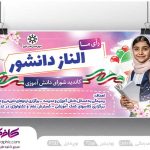 طراحی این بنر تبلیغاتی شورای دانش آموزی با عکس توسط تیم کافه گرافیک بصورت اختصاصی انجام شده و در هیچ وب سایت دیگری نمونه مشابه ندارد.