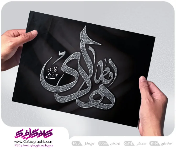 تایپوگرافی امام هادی علیه السلام رایگان با نرم افزار فتوشاپ توسط تیم حرفه ای کافه گرافیک طراحی شده است .