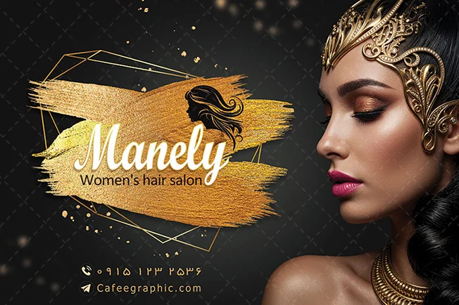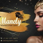طرح برچسب سالن آرایشگاه زنانه لایه باز یا بنر سالن زیبایی زنانه طلایی و مشکی را بصورت لایه باز در فرمت PSD فتوشاپی،ابعاد200*300 افقی می باشد.